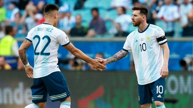 Martinez bên cạnh Messi trong màu áo ĐTQG Argentina.