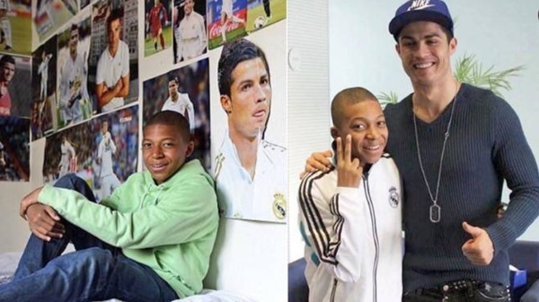 Từ nhỏ Mbappe vì ngưỡng mộ Ronaldo nên đã dán đầy hình ảnh của siêu sao người Bồ ở trong phòng của mình. Thế nên, cậu nhóc ấy đã rất sung sướng khi gặp được thần tượng trong lần đến thăm trung tâm huấn luyện Valdebabes của Real Madrid.