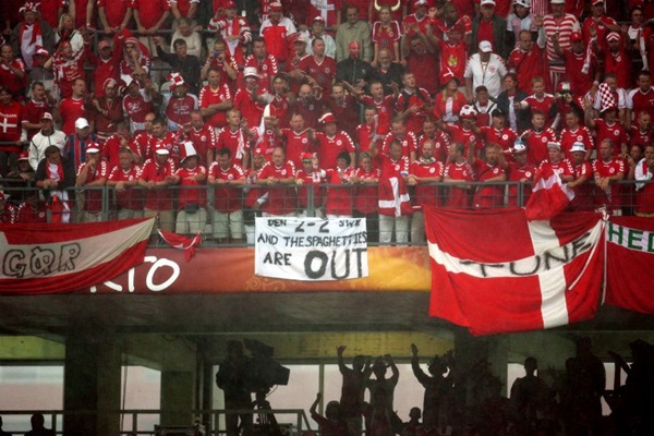 Các CĐV Thụy Điển giơ biểu ngữ: “2-2 = Nordic Victory”, tạm dịch là “Người Bắc Âu chiến thắng”. “2-2 và lũ Spaghetti đã bị loại” là băng rôn của các CĐV Đan Mạch viết. Người hâm mộ bóng đá của hai nước đều hoan hỉ.