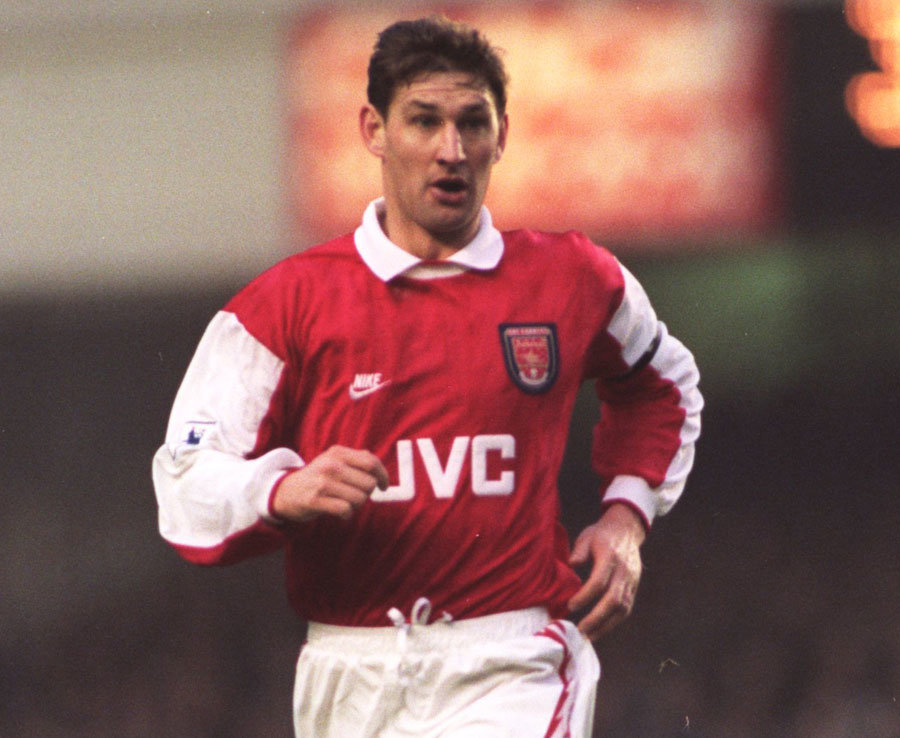 10. Tony Adams (Arsenal) – Từ 1983 đến 2002 – Adams được xem là một trong những hậu vệ vĩ đại nhất lịch sử Ngoại hạng Anh. Trong thời gian khoác áo Arsenal, Adams đã có 4 chức vô địch nước Anh, 3 Cúp FA và 2 Cúp liên đoàn. Ảnh: Daily Star.
