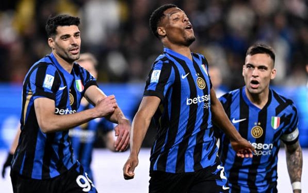 Không lâu sau, Yann Bisseck cũng có pha đánh đầu đáng chú ý từ tình huống phạt góc, nhưng không đủ chính xác để đánh bại “người gác đền” bên phía Atalanta. Đội bóng vùng Bergamo đáp trả với cú đánh đầu của Giorgio Scalvini, nhưng Yann Sommer dễ dàng kiểm soát tình hình. Trong hiệp một, Inter Milan là đội tỏ ra sắc bén hơn trong khâu tổ chức tấn công, dù Lautaro Martinez bỏ lỡ một vài cơ hội từ các vị trí thuận lợi. Hai đội rời sân tạm nghỉ với tỷ số hòa 0-0.Sau giờ nghỉ, các học trò của Simone Inzaghi bất ngờ có bàn thắng mở tỷ số. Phút 47, từ tình huống lộn xộn trong vòng cấm địa Atalanta, Yann Bisseck làm tường chuẩn xác, tạo điều kiện để Denzel Dumfries thực hiện cú “xe đạp chổng ngược” đẹp mắt từ cự ly gần, không cho thủ môn Marco Carnesecchi bất cứ cơ hội cản phá nào.Bàn thắng giúp “Nerazzurri” chơi tự tin hơn, đồng thời buộc Atalanta phải dâng cao tìm kiếm cơ hội gỡ hòa, qua đó mở ra khoảng trống lớn ở hàng phòng ngự cho nhà đương kim vô địch Serie A có thể tận dụng.Phút 61, từ một tình huống lên bóng nhanh, Dumfries tung cú sút quyết đoán từ rìa vòng cấm, bóng chạm mép dưới xà ngang trước khi đi vào lưới, hoàn tất cú đúp cho riêng mình, nhân đôi cách biệt cho thầy trò Simone Inzaghi.Atalanta tăng cường sức tấn công bằng việc đưa các ngôi sao như Charles De Ketelaere và Ederson vào sân. Phút 72, tưởng như đội bóng vùng Bergamo đã có thể gỡ hòa khi cầu thủ người Bỉ đưa bóng vào lưới, tuy nhiên, VAR xác định anh đã việt vị trước đó, khiến bàn thắng không được công nhận.Denzel Dumfries thay phần việc của Lautaro Martinez ở trận đấu này.Những phút cuối, Atalanta liên tục ép sân nhưng không thể xuyên phá hàng thủ vững chắc của Inter Milan. Những nỗ lực dứt điểm của Marco Brescianini và Berat Djimsiti đều không mang lại hiệu quả, trong khi thủ thành Yann Sommer tỏa sáng với các pha cản phá xuất thần.Chiến thắng chung cuộc 2-0 đưa “Nerazzurri” vào trận chung kết Siêu cúp Italia”, nơi họ hướng tới mục tiêu trở thành đội bóng đầu tiên vô địch giải đấu bốn năm liên tiếp. Theo lịch thi đấu, trận chung kết sẽ diễn ra vào ngày 6/1 tới.Chiến lược dài hạn của Inter Milan giúp câu lạc bộ tiếp tục gặt hái thành công dưới thời Simone Inzaghi. Về phần Atalanta, đội bóng này có lẽ nên tập trung vào Serie A và Champions League sau thất bại.