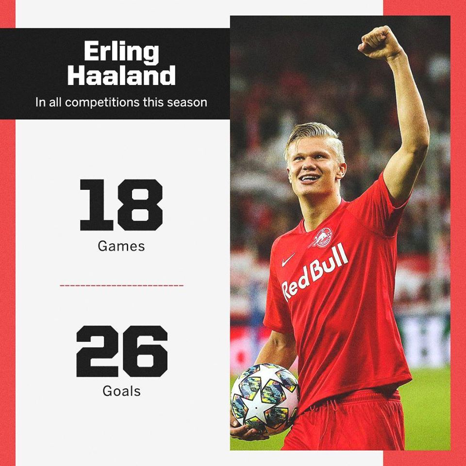 Cá nhân Braut Haland thậm chí làm lu mờ tất cả các siêu sao đàn anh để dẫn đầu danh sách ghi bàn ở Champions League (7). Chưa hết, cầu thủ sinh năm 2000 đã ghi được 26 bàn thắng chỉ sau 18 trận đã chơi mùa này, trong đó có đến 5 cú hattrick trên mọi đấu trường!