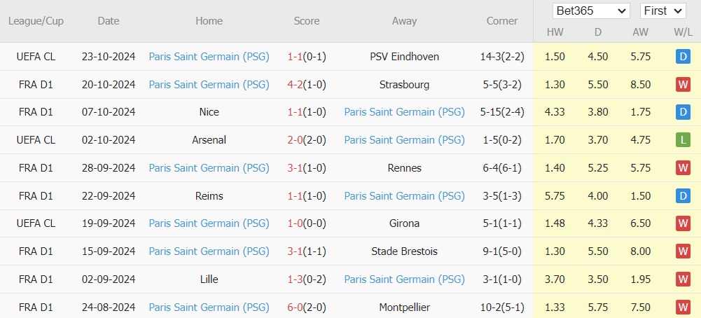 10 trận gần nhất Marseille thắng 6 hòa 3 thua 1. Tỷ lệ thắng 60%. Tỷ lệ thắng kèo 60%. Tỷ lệ tài 70%.Sau 8 vòng đấu, Marseille giành 17 điểm và xếp thứ ba trên bảng xếp hạng, chỉ sau Paris Saint Germain và Monaco. Sau khi có dấu hiệu chệch choạc với 2 trận liên tiếp không thắng, thầy trò HLV De Zerbi kịp trở lại bằng màn hủy diệt Montpellier với tỉ số 5-0 ngay trên sân khách vòng trước.Mason Greenwood là cái tên ấn tượng nhất bên phía Marseille. Anh gây ấn tượng mạnh với 6 bàn thắng và 1 kiến tạo tại Ligue 1 mùa này. Dưới sự dẫn dắt của HLV De Zerbi, cựu sao M.U đang dần tìm lại chính mình.Trận gặp PSG tới sẽ là thước đo kiểm chứng tham vọng của Marseille. Gã nhà giàu nước Pháp là 1 trong 3 đội bất bại tới lúc này của Ligue 1. Tính trên mọi đấu trường, PSG mới chỉ thua 1 trận trước Arsenal tại Champions League.10 trận gần nhất, PSG thắng 6 hòa hòa 3 thua 1. Tỷ lệ thắng 60%. Tỷ lệ thắng kèo 50%. Tỷ lệ tài 50%Tuy nhiên, trong 1 tháng trở lại đây, PSG lại bắt đầu cho thấy những vấn đề. 4/6 trận gần nhất trên tất cả các mặt trận, thầy trò HLV Luis Enrique không thắng.Giữa tuần qua, PSG bị PSV cầm hòa 1-1 ngay trên sân nhà trong một trận đấu họ áp đảo toàn diện và tung ra tới 26 cú dứt điểm. Khả năng chuyển hóa cơ hội của đội bóng thủ đô nước Pháp thời gian gần đây cho thấy sự thiếu hiệu quả. Việc PSG ghi tới 25 bàn sau 8 vòng đấu tại Ligue 1 trước những đối thủ yếu hơn đã vô tình che mờ đi điều này.Thống kê-5/7 trận đối đầu gần nhất giữa 2 đội kết thúc với ít nhất 2 bàn thắng.-PSG chỉ thua 1 trận từ đầu mùa trên mọi đấu trường nhưng không thắng 4/6 trận gần nhất.-PSG vượt trội về thành tích đối đầu khi thắng 8/10 trận gần nhất gặp Marseille.Lực lượngMarseille: Faris Moumbagna, Ruben Blanco, Quentin Merlin, Bilal Nadir và Valentin Carboni vắng mặt vì dính chấn thương.PSG: Goncalo Ramos và Lucas Hernandez vắng mặt vì dính chấn thương.Đội hình dự kiếnMarseille (4-2-3-1): Rulli; Lirola, Balerdi, Cornelius, Ulisses Garcia; Emil Hojbjerg, Rabiot; Greenwood, Harit, Henrique; Wahi.PSG (4-3-3): Donnarumma; Hakimi, Marquinhos, Pacho, Nuno Mendes; Zaire-Emery, Vitinha, Fabian Ruiz; Dembele, Asensio, Barcola.Tỷ lệ ghi bàn và thủng lướiTỷ lệ ghi bàn và thủng lưới của 2 đội trong 30 trận gần nhất.Tỷ lệ ghi bàn và thủng lưới của 2 đội trong 50 trận gần nhất.Nhận địnhMarseille giờ đã tiến bộ hơn rất nhiều so với trước đây và chắc chắn sẽ không dễ bị bắt nạt. Do đó, thành tích đối đầu giữa 2 đội trong quá khứ chỉ mang tính chất tham khảo.Marseille có lợi thế sân nhà và được nghỉ nhiều ngày hơn do PSG phải thi đấu ở Champions League vào giữa tuần. Nếu chơi đúng sức như những gì đã thể hiện từ đầu mùa, đội bóng thành phố cảng hoàn toàn có thể nghĩ tới việc giành điểm trước PSG.Dự đoán (theo Whoscored): Marseille 2-1 PSG