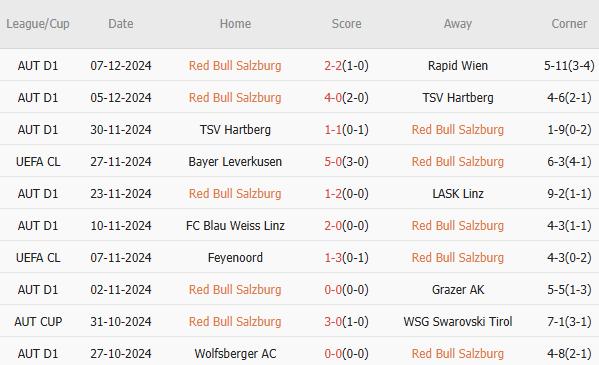 10 trận gần nhất, RB Salzburg thắng 3, hòa 3, thua 4. Tỷ lệ thắng đạt 30%. Tỷ lệ thắng kèo châu Á đạt 30%. Tỷ lệ tài 40%.Sau 5 lượt đấu đầu tiên, PSG tạm thời đứng ở vị trí thứ 25 trên bảng xếp hạng. Ngoài chiến thắng nhọc nhằn trước Girona, đội bóng này thua Arsenal, Atletico Madrid và Bayern Munich, ngoài ra còn một trận hòa với PSV Eindhoven.Một trong những vấn đề lớn nhất của thầy trò Luis Enrique hiện tại chính là sự thiếu hiệu quả trong khâu ghi bàn dù sở hữu những ngôi sao chất lượng. Đến nay, chỉ Young Boys, Bologna và Sturm Graz ghi ít bàn thắng hơn PSG tại Champions League.Về phía Red Bull Salzburg, dưới sự dẫn dắt của tân huấn luyện viên Pep Lijnders, cũng trải qua một chiến dịch tồi tệ không kém. Nếu tiếp tục nhận thất bại ở trận đấu diễn ra vào rạng sáng mai (theo giờ Việt Nam), đội bóng nước Áo sẽ đối mặt với nguy cơ bị loại khỏi Champions League dù còn hai trận đấu nữa.