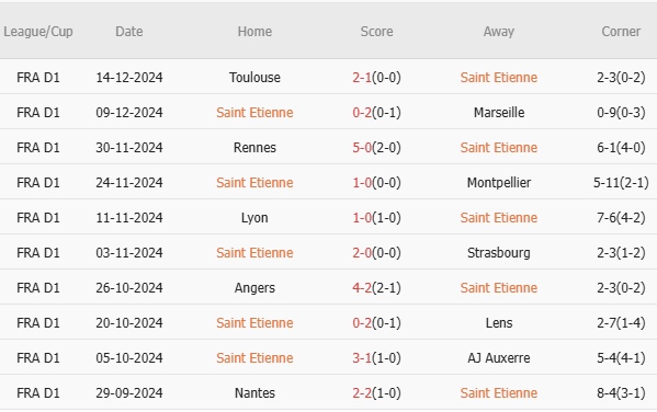 10 trận gần nhất: Saint Etienne thắng 3, hòa 1, thua 6. Tỷ lệ thắng: 30%. Tỷ lệ thắng kèo nhà cái châu Á: 40%. Tỷ lệ tài: 50%Trong khi đó, Marseille bước vào trận đấu này với phong độ tích cực hơn. Đội bóng của HLV Roberto De Zerbi đã duy trì chuỗi bốn trận bất bại, dù trận gần nhất chỉ là trận hòa 1-1 trước Lille. Với việc không tham dự các giải đấu châu Âu mùa này, Marseille đang tập trung cho mục tiêu tiến sâu ở Coupe de France.10 trận gần nhất: Marseille thắng 5, hòa 2, thua 3. Tỷ lệ thắng: 50%. Tỷ lệ thắng kèo nhà cái châu Á: 50%. Tỷ lệ tài: 40%.10 lần chạm trán gần nhất giữa hai đội. Saint Etienne thắng 2, hòa 0, thua 8. Tỷ lệ thắng: 20%. Tỷ lệ thắng kèo nhà cái châu Á: 80%. Tỷ lệ tài: 60%.Lực lượngCả hai đội đều đối mặt với các vấn đề lực lượng. Saint-Etienne mất hàng loạt cầu thủ quan trọng do chấn thương, bao gồm Thomas Monconduit, Anthony Briancon, Ibrahima Wadji, và Mickael Nade. Điều này khiến đội bóng phải dựa nhiều vào cầu thủ trẻ cũng như sự tỏa sáng của các cá nhân như Zuriko Davitashvili – cầu thủ dẫn đầu danh sách ghi bàn của họ với 5 bàn mùa này nhưng đang trải qua cơn hạn bàn thắng kéo dài từ tháng 10.Phía Marseille, HLV Roberto De Zerbi cũng không có sự phục vụ của một số cầu thủ như Valentin Carboni, Elye Wahi và Ruben Blanco do chấn thương. Tuy nhiên, Mason Greenwood, người đã ghi 10 bàn mùa này, vẫn là tâm điểm trên hàng công. Anh sẽ tiếp tục đóng vai trò quan trọng trong việc duy trì sức mạnh tấn công của đội bóng.Đội hình dự kiếnSaint-Etienne:Larsonneur; Appiah, Batubinsika, Abdelhamid, Petrot, Cornud; Bouchouari, Ekwah, Mouton; Davitashvili, StassinMarseille:De Lange; Murillo, Balerdi, Kondogbia; Henrique, Hojbjerg, Rongier, Merlin; Greenwood, Maupay, RabiotTỷ lệ ghi bàn & thủng lướiTỷ lệ ghi bàn và thủng lưới của hai đội 30 trận gần nhất.Tỷ lệ ghi bàn và thủng lưới của hai đội 50 trận gần nhấtNhận địnhSaint-Etienne bước vào trận đấu này với tinh thần chiến đấu cao nhằm thoát khỏi chuỗi trận đáng thất vọng. Tuy nhiên, sự thiếu hụt lực lượng và phong độ không ổn định là trở ngại lớn đối với đội bóng đang xếp nhóm cuối tại Ligue 1. HLV tạm quyền Laurent Huard có thể tạo ra một vài bất ngờ chiến thuật, nhưng khả năng duy trì sự ổn định trước đối thủ mạnh như Marseille là điều khó khăn.Marseille, dù phải thi đấu trên sân khách, vẫn được đánh giá cao hơn nhờ đội hình chất lượng và phong độ tích cực. Sự tự tin sau chiến thắng trước chính Saint-Etienne hồi đầu tháng cùng mục tiêu tiến sâu ở Coupe de France sẽ là động lực lớn. Các ngôi sao như Mason Greenwood hay Adrien Rabiot đủ khả năng giúp Marseille kiểm soát trận đấu và giành chiến thắng thuyết phục.Dự đoán tỷ số (theo Sportsmole): Saint-Etienne 1-3 Marseille