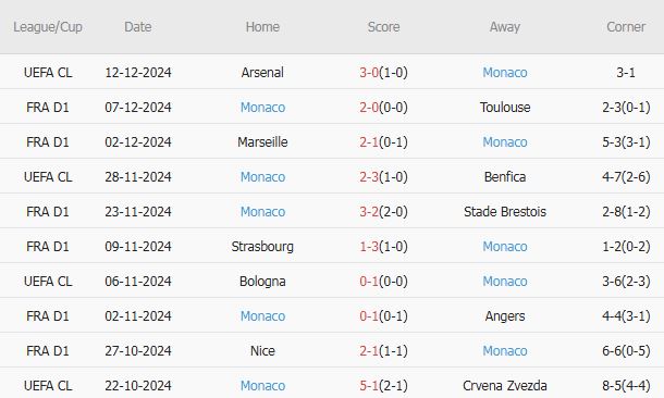 10 trận gần nhất, Monaco có 5 chiến thắng, 5 trận hòa. Tỷ lệ thắng: 50%. Tỷ lệ thắng kèo châu Á: 40%. Tỷ lệ thắng kèo tài: 70%.Monaco đã bị Pháo thủ bắt bài và để thủng lưới hai bàn sau giờ nghỉ, khiến họ không thể tiếp nối chiến thắng 2-0 trước Toulouse tuần trước. Hai thất bại khác trong chuỗi trận này đến từ Benfica và Marseille, với cả hai bàn thắng quyết định được ghi trong những phút cuối.Trận thua trước Marseille khiến Monaco bị đội bóng của Roberto De Zerbi đẩy xuống vị trí thứ ba trên BXH Ligue 1, do thua hiệu số bàn thắng bại.Trên sân khách, Monaco gây ấn tượng với 10 chiến thắng trong 13 trận đấu Ligue 1 gần nhất, và họ cũng đã thắng trong hai chuyến làm khách trước Reims gần đây. Dù ở trận gặp nhau gần nhất, Reims giành chiến thắng 3-1 tại Stade Louis II vào tháng 1, nhưng cần nhớ rằng, Reims chưa từng thắng hai trận liên tiếp trước Monaco ở Ligue 1 kể từ năm 1974.