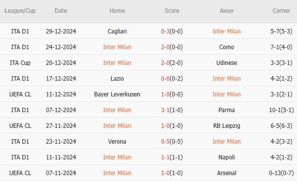 Thầy trò Simone Inzaghi sẽ bước vào cuộc chạm trán Atalanta với thành tích năm trận thắng liên tiếp tại giải quốc nội, ghi trung bình hơn 3 bàn mỗi 90 phút. Ở trận đấu cuối cùng của năm 2024, họ đánh bại Cagliari với tỷ số thuyết phục 3-0 nhờ những pha lập công của Alessandro Bastoni, Lautaro Martinez và Hakan Calhanoglu.10 trận gần nhất, Atalanta thắng 8, hòa 1, thua 1. Tỷ lệ thắng đạt 80%. Tỷ lệ thắng kèo châu Á đạt 60%. Tỷ lệ tài 50%.Suốt 12 tháng qua, Inter Milan là đội bóng thống trị tại Ý, giành chiến thắng 27/38 trận tại Serie A và chỉ để thua hai lần, với thất bại gần nhất đã diễn ra hồi tháng 9. Một trong những chiến thắng nổi bật nhất của “Nerazzurri” là màn trình diễn áp đảo trước chính Atalanta (thắng 4-0). Tuy nhiên, đại diện vùng Bergamo đã hồi phục ấn tượng kể từ đó.