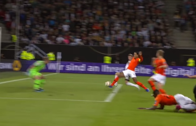 Van Dijk cũng sở hữu một tình huống ngăn chặn bàn thắng mười mười của tuyển Đức, khi anh cản phá bóng ngay trước mũi giày tiền đạo Timo Werner ở phút 53, thời điểm đội chủ nhà vẫn dẫn trước 1-0. Thế trận có thể sẽ khác nếu cầu thủ của RB Leipzig ăn bàn trong pha băng xuống đó.