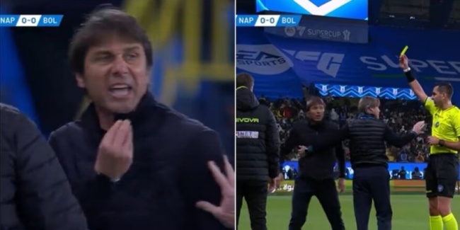Conte không hài lòng với quyết định của trọng tài.Trận chung kết Siêu cúp Italia giữa Napoli và Bologna chứng kiến màn trình diễn chói sáng của David Neres, đồng thời nó là nơi HLV Antonio Conte thể hiện trọn vẹn cá tính máu lửa của mình.