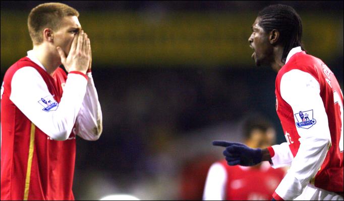 Thêm một lần Adebayou vướng vào những vụ cải vã với đồng đội. Bán kết League Cup năm 2008, Arsenal không chỉ thua nhục nhã 1-5 trước đại kình địch Tottenham mà hình ảnh họ để lại cũng không đẹp mắt. Theo đó, Bendtner và Adebayor đã lao vào đòi ăn thua đủ do mâu thuẫn đã xảy ra trong suốt trận đấu. ở những phút cuối, Adebayor đã lao lên húc vào mặt Bendtner, sau đó tiền đạo người Đan Mạch định quay lại trả đũa. Rất may khi William Gallas đã can ngăn kịp thời.