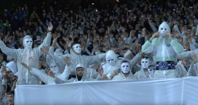 CĐV Kiyv trong trang phục trắng, mặt nạ trắng và cờ trắng liên tục hát vang những khẩu hiệu phân biệt chủng tộc trên khán đài. Tấm băng rôn khổng lồ với nội dung “100% White” cũng được giăng lên để phản đối các cầu thủ da màu.