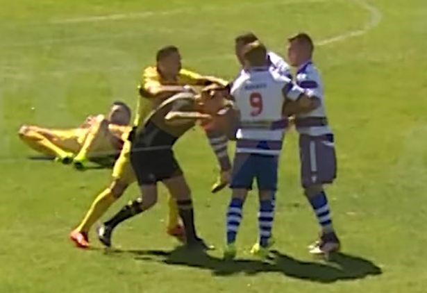 Gã cầu thủ côn đồ lên gối vỡ mũi trọng tài