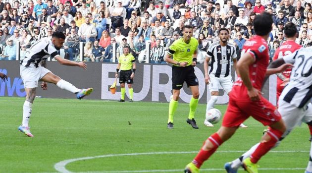 Muani ăn mừng bàn thắng cùng đồng đội.Tuy nhiên, Juventus chỉ còn chơi với 10 người kể từ thời gian bù giờ hiệp một khi Kenan Yildiz đánh nguội Alessandro Bianco. Anh không hề phản đối khi trọng tài rút thẻ đỏ..