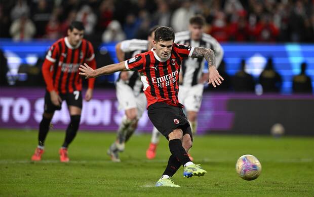 Pulisic gỡ hòa cho Milan.Rạng sáng nay, Juventus có cuộc chạm trán với AC Milan trong khuôn khổ bán kết Siêu cúp Italia. Trận đấu giữa Juventus và AC Milan diễn ra với không khí cực kỳ căng thẳng và hấp dẫn ngay từ những phút đầu tiên.Ngay sau tiếng còi khai cuộc, Milan thể hiện ý đồ chiếm ưu thế với lối chơi áp sát, gây sức ép mạnh mẽ lên khu vực sân nhà của Juventus.